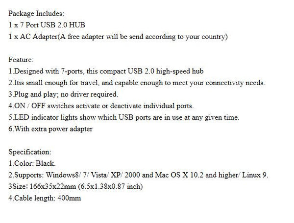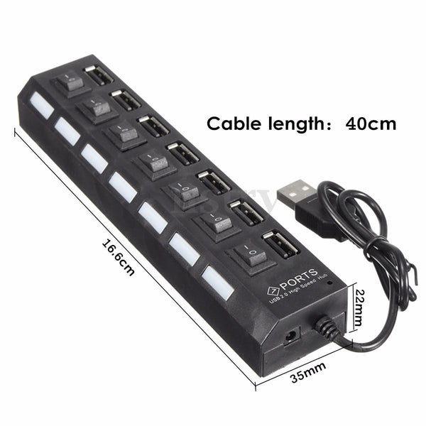 USB PORTS x7 Plus Power Adapter With Led